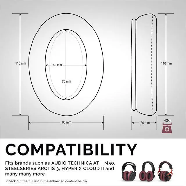 Replacement earpads made with made with high quality memory foam. ^^ Comfortable and fits many oval cup designed headphones. ^^ Designed for comfort and style. ^^ Durable and long lasting, quality made ear pad. ^^ Better quality than most stock earpads found on high end headphones