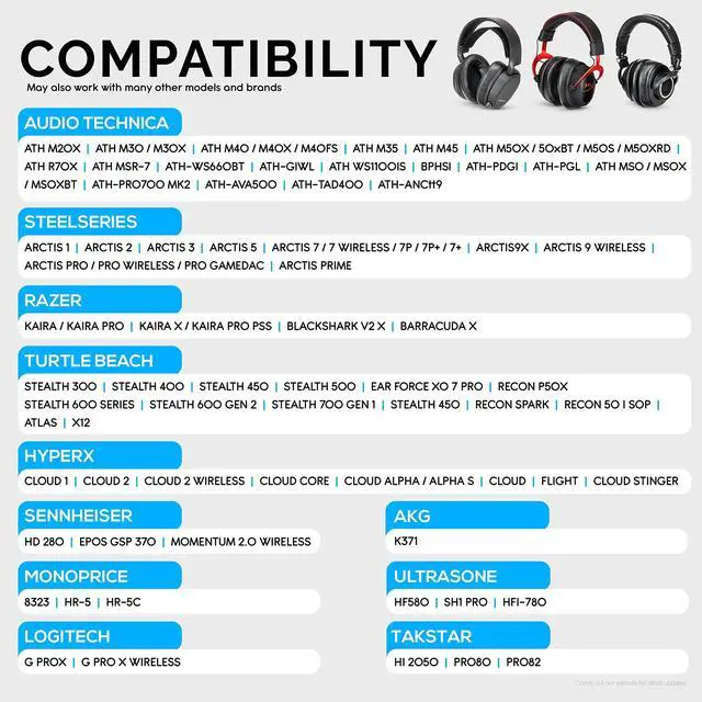 Replacement earpads made with made with high quality memory foam. ^^ EAR PAD REPLACEMENTS FOR OVAL HEADPHONES: Our state-of-the-art replacement ear pads are designed for comfort, suitable for ATH M50, M50x and Brainwavz HM5 and many other oval headphones. See below for list of compatible models and dimensions of earpads.