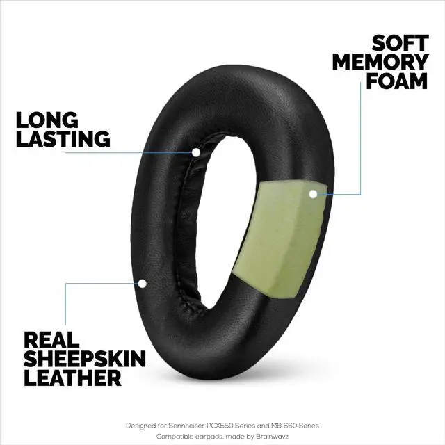 These earpads have been designed to be suitable for Sennheiser PXC480, PXC550, PXC 550-II, PXC550 Wireless, MB660 UC, MB 660 MC Headphones. Easy to install, and include a soft and comfy inner foam structure, all wrapped in the finest real sheepskin leather material. Brainwavz replacement earpads will give you that box-fresh feeling you get when you first put on your new headphones, and you will rediscover the sound and comfort you didn't even know was missing - new earpads - bringing headphones back to life. These are compatible earpads, manufactured by Brainwavz.