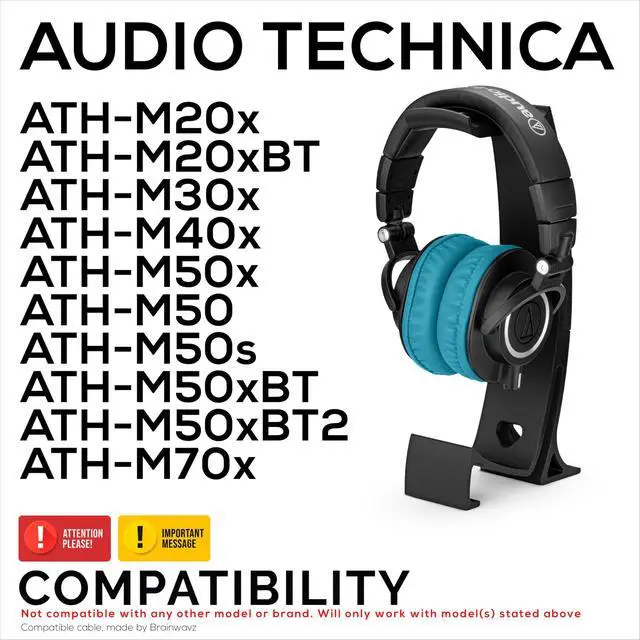 COMPATIBLE WITH AUDIO TECHNICA ATH M50X & MORE: These earpads have been designed to be suitable for Audio Technica ATH-M20x, ATH-M20xBT, ATH-M30x, ATH-M40x, ATH-M50x, ATH-M50, ATH-M50s, ATH-M50xBT, ATH-M50xBT2 & ATH-M70x models. They will not fit any other brands or models. Please double check the model of your headset. These are compatible earpads, manufactured by Brainwavz.