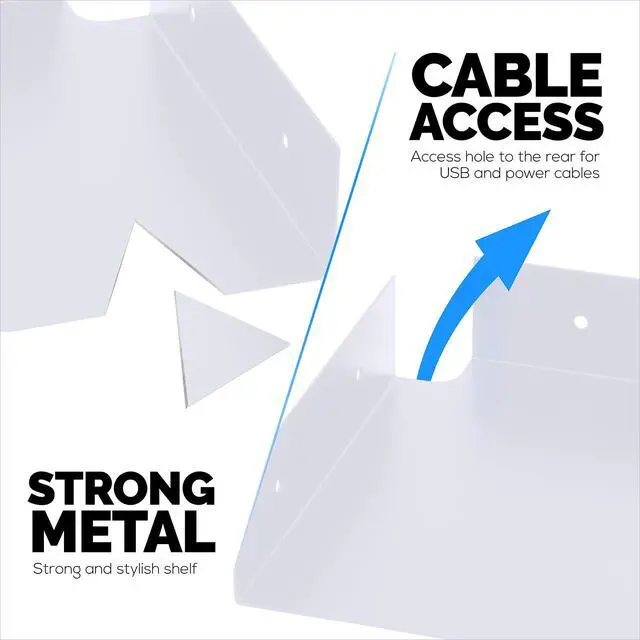 ^^ CABLE ACCESS: Access holes to the rear of the shelf for USB / power cable, cords & charging cables to easily pass through, for use with small electronics like smart speakers, cameras and much more.