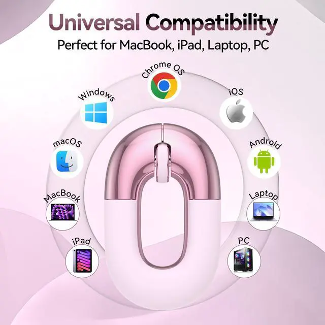 Macaron Colored Donut MouseThe carefully designed donut shape and contour lines of FOPATO F01 bluetooth mouse, with Macron like bright colors, showcase a unique personality charm, elegant yet fun ^^ Dynamic Curves Showcase the Beauty of RoundnessWhether used as a gaming mouse or an office mousethe overall shape of wireless mouse is very rounded, making it feel very smooth and comfortable to hold in the hand ^^ 2.4G /Bluetooth Dual-mode SwitchingComputer mouse supports dual-mode connection, and can easily switch between two devices with just a gentle press of the bottom button. The Bluetooth mode will light up blue, and the 2.4G mode will light up white ^^ Supports Multiple Devices and SystemsTravel bluetooth mouse supports desktop computers, laptops, tablets, smartphones and other devices.