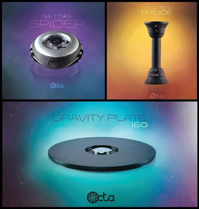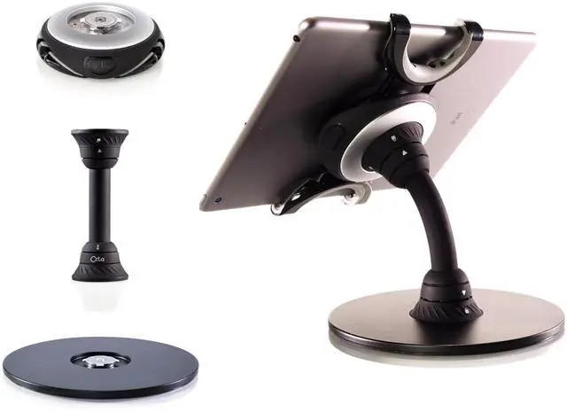 Octa: the award-winning Spider, the Bridge, and the Gravity Plate. These three parts click and lock together to create a sturdy and adjustable stand. The modular design allows them to breakdown easily for travel or pair with other parts in the system. You can use the Spider + Bridge combination for an on-the-go handle and kickstand. At each end, a 360 lockable swivel allows smooth rotation between landscape and portrait. The flexible Bridge is 6" long and allows for quick adjustment of viewing angles. Flip it back and forth for a Point of Sale (POS) setup. Perfect for video, work or play.