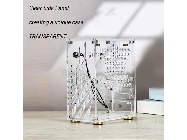 Denash Transparent Mini ITX Case, Clear Side Panel, 4.3L Capacity, 360 Degree Cooling, Acrylic Small Form Factor Mini ITX Case for Mini ITX Motherboard (Transparent)