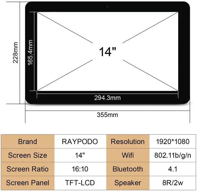 • RAYPODO Wall Mount 14 inch Android 11 RK3568 Chipset GB 2GB RAM 32GB ROM RJ45 ethernet Tablet for Smart Home,Education,commerical Display (Inches, 14.0, Black, Ethernet, 16, GB)