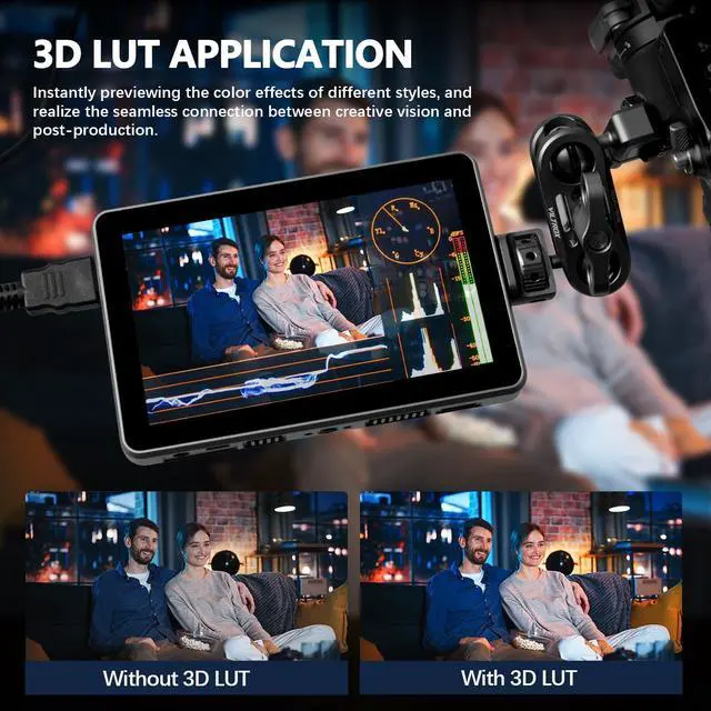 Versatile Monitoring Functions - The DC-X2 monitor supports luminance/RGB histogram, RGB/Y/YUV Parade, full waveform, vectorscope, focus peaking, audio bar, zebras, false color, nine grid, zoom and more, providing you a professional monitoring experience. Support Custom 3D LUT.