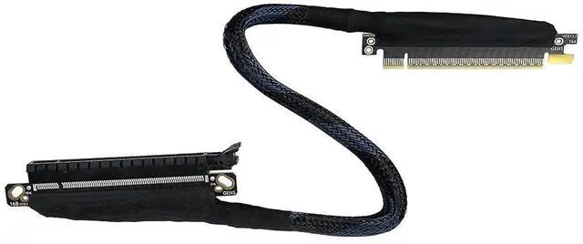 • PCIE 5.0 X16 graphics card extension cable, 64GB/S bidirectional bandwidth, 180 degree. Cannot be used to server motherboards that compatible with PRSNT signals, such as 5090.