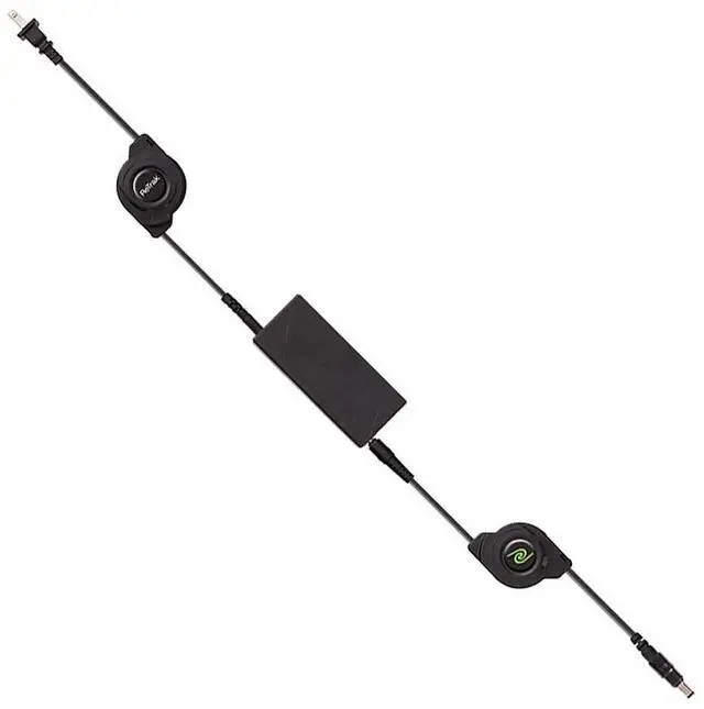 The 2 USB power ports included with this universal laptop charger allow you to charge more than one device simultaneously. You can customize the cable length of this universal laptop charger; which has a retractable cord that extends up to 9.5 ft. Whether you need to charge your laptop across the conference room table while you present; or on your lap while you work; it has you covered. It also comes with a convenient travel pouch to keep everything together. When you are done; it retracts to a compact size that's perfect for commuting and travel on-the-go.