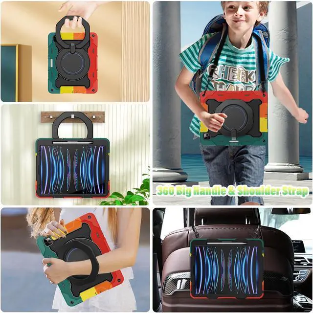 [Strongest Style Kickstand] Only one type of iPad 12.9 inch full body shockproof rugged protective durable rubber case equip with big handle on back in the market, supports any viewing angles in horizontal and vertical orientation, easy to open / close the kickstand, that use it very much convenience for you and your kids and your family