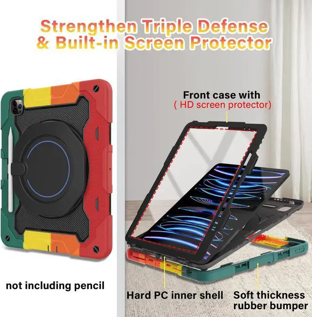 [Military Grade Heavy Duty Shockproof Cover Case ] For iPad pro 12.9 2022 6th generation (model: A2436/A2437/A2764/A2766), New iPad Pro 12.9 2021 5th generation(model: A2379/A2378/A2461/A2462), iPad Pro 12.9 2020 4th generation(model: A2229/A2069/A2232/A2233) and iPad Pro 12.9 2018 3rd generation(model: A1876/A2014/A1895/A1895)