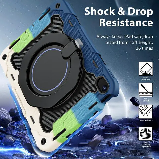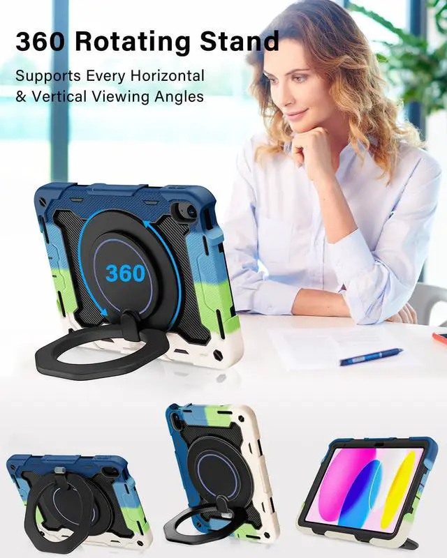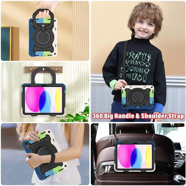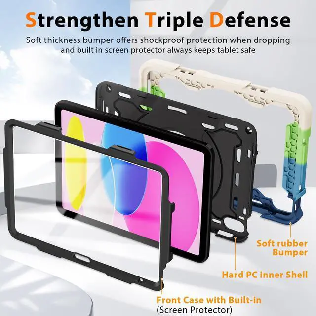[3-Layer Full Body Protection with built in HD Screen Protector] Built in HD screen protector, enhance 3-layer construction design,unique super thick shock-absorbing iPad 10th/11th Case silicone shell exceed 2X Military Grade Drop Test Standard [MIL-STD 810G-516.6], be sure to offer strongest protection, against any sudden drop, shock and knocks, safe for kids. Additional built-in upgrade sponge technology adds extra heat-dissipation