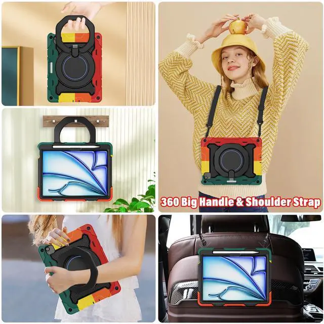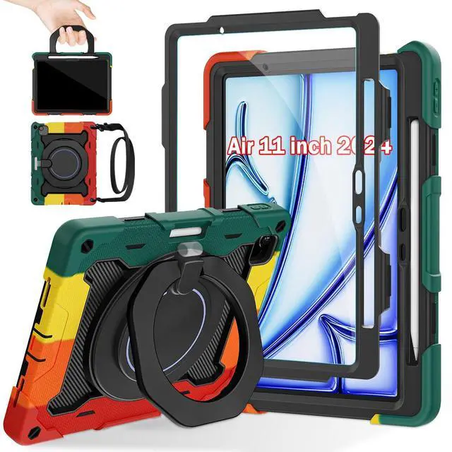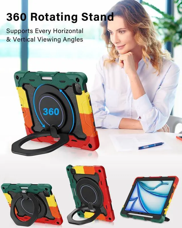 ROISKIN for iPad Air 11 inch Case (M3 2025/M2 2024)/ Air 6th Generation for Kids with HD Screen Protector, 360 Rotating Kickstand, Shoulder Strap, Pen Holder, Heavy Duty Military Case for iPad Air 11