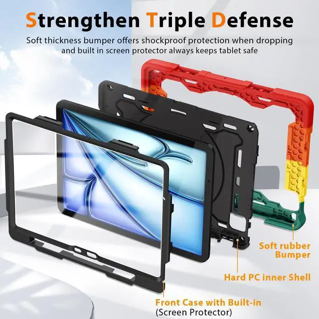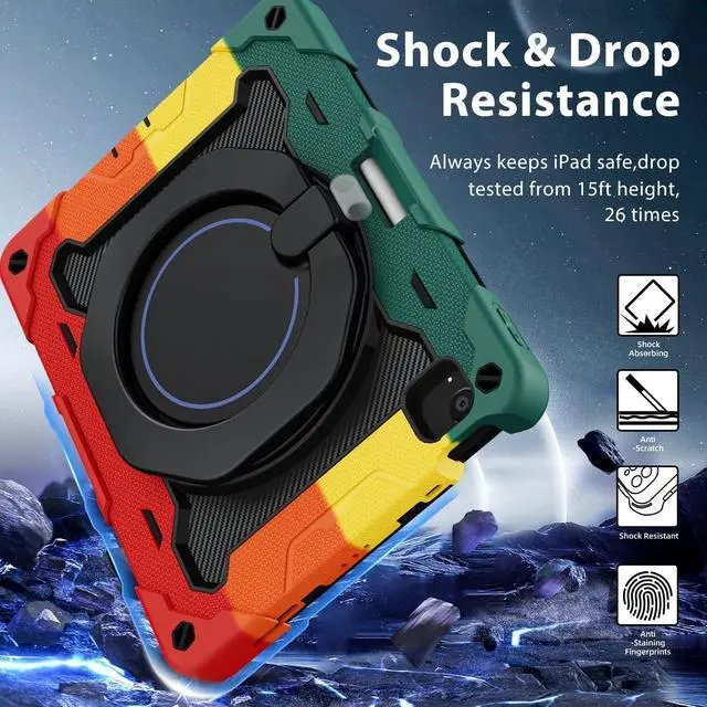[3-Layer Full Body Protection with built in HD Screen Protector] Built in HD screen protector, enhance 3-layer construction design,unique super thick shock-absorbing iPad Case silicone shell exceed 2X Military Grade Drop Test Standard [MIL-STD 810G-516.6], be sure to offer strongest protection, against any sudden drop, shock and knocks, safe for kids. Additional built-in upgrade sponge technology adds extra heat-dissipation