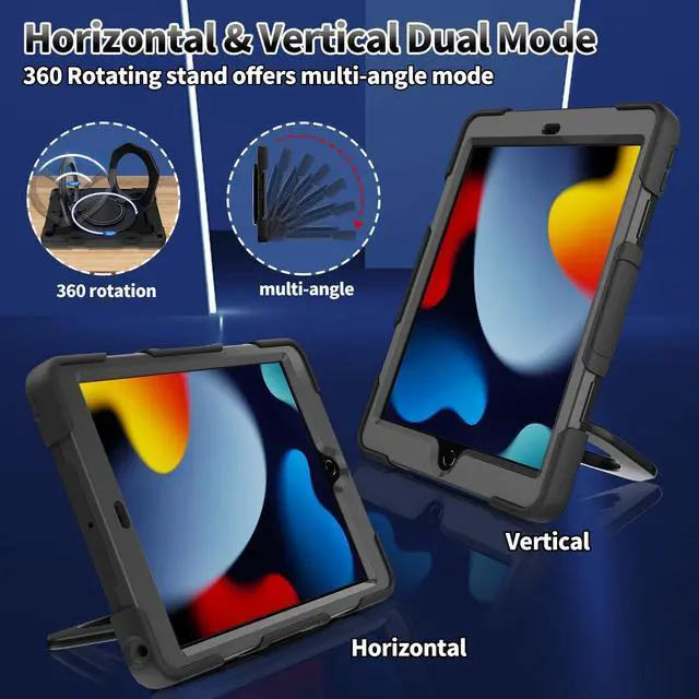[ Viewing Your iPad in any Direction ]: 360 rotating kickstand on the back provides every viewing angles for vertical and horizontal mode to meet your every ideal viewing angle. offer 12 months warranty
