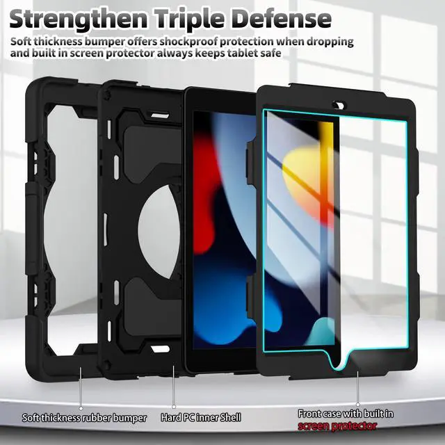 [ 3-layer Full Body Protection ]: Soft thickness airbag tpu bumper + hard pc back case + front frame without built in screen protector = provide comprehensive protection for your iPad