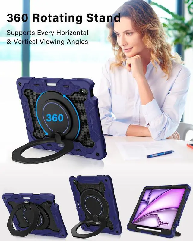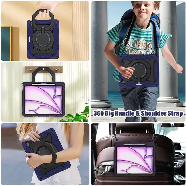 ROISKIN for iPad Air 13 inch Case (M3 2025/M2 2024) -with HD Screen Protector, 360 Rotating Kickstand/Handle, Shoulder Strap, Pen Holder, Heavy Duty Military Grade - Kids Friendly
