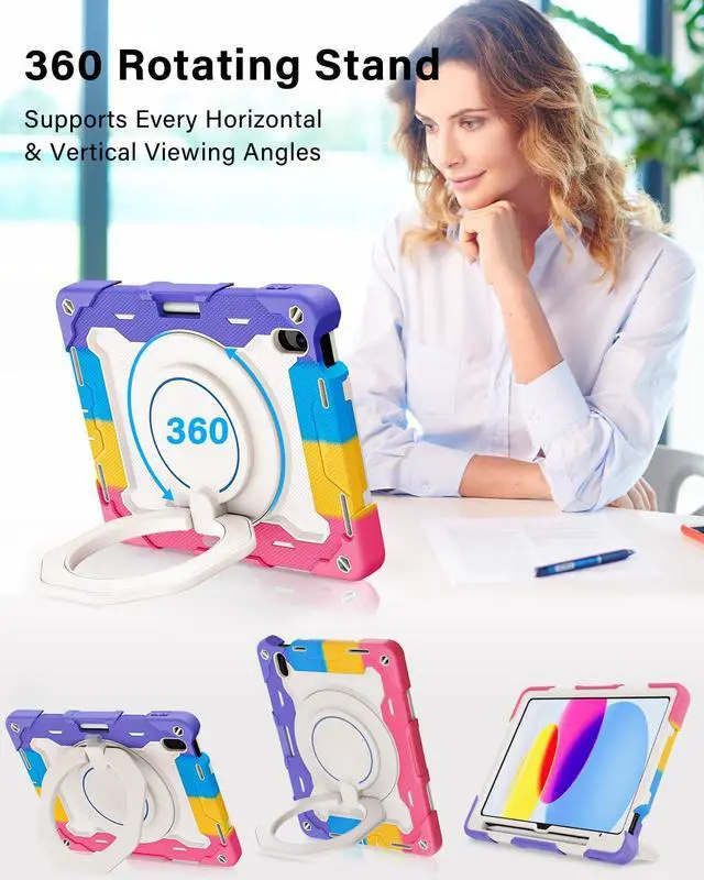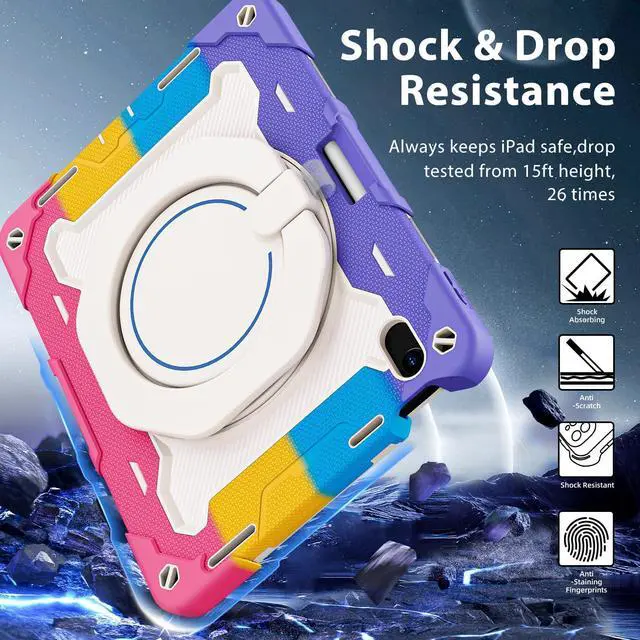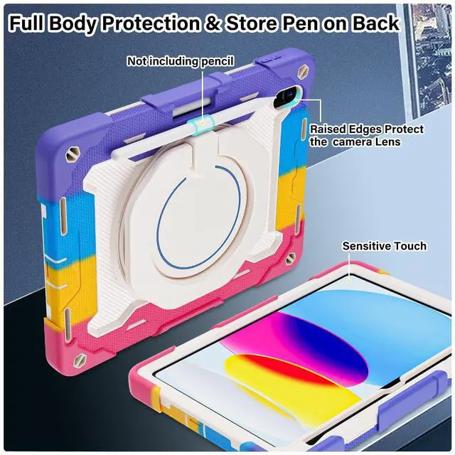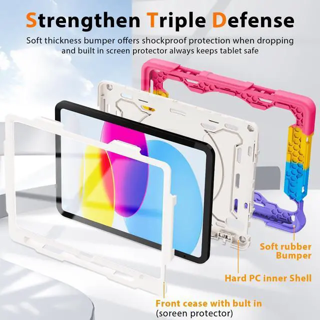 [3-Layer Full Body Protection with built in HD Screen Protector] Built in HD screen protector, enhance 3-layer construction design,unique super thick shock-absorbing iPad 10th/11th Case silicone shell exceed 2X Military Grade Drop Test Standard [MIL-STD 810G-516.6], be sure to offer strongest protection, against any sudden drop, shock and knocks, safe for kids. Additional built-in upgrade sponge technology adds extra heat-dissipation