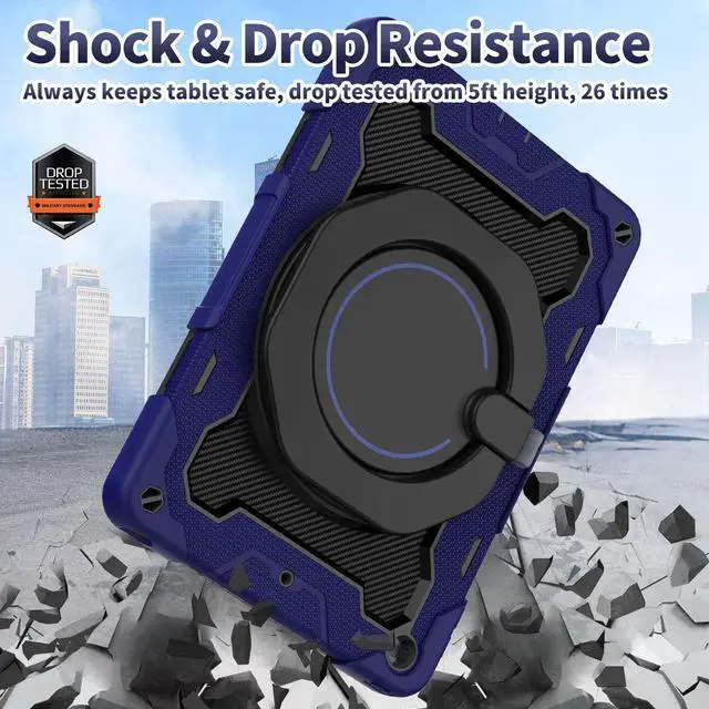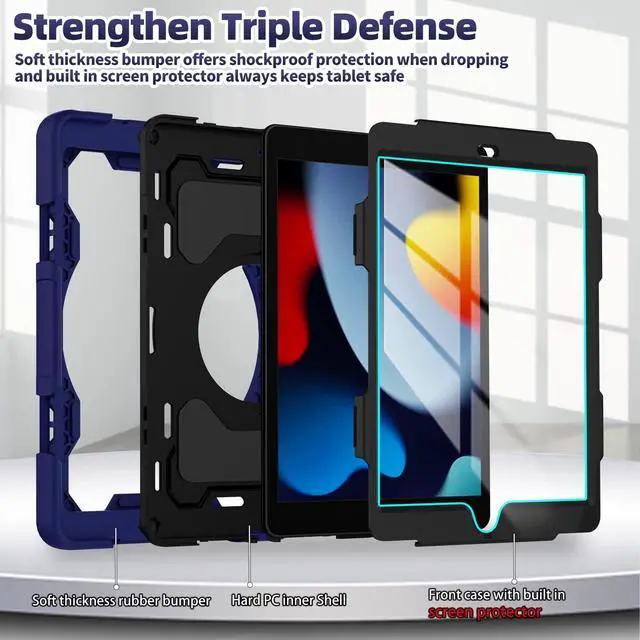 [Heavy Duty Military Grade Shockproof Rugged Full Body Protective 10.2" Cover] Fits 2021 iPad 10.2 inch 9th Generation model A2602 A2603 A2604 A2605, 2020 iPad 10.2 inch 8th Generation model A2197 A2198 A2200, 2019 Release iPad 10.2 inch 7th Generation A2270 A2428 A2429 A2430 ^^ [Advanced Silicone Material Enhanced Drop Protection] Upgrade shock-absorbing iPad 9th/8th/7th generation silicone shell with Air-Guard corners and shock-absorbing silicone to protect iPad 10.2 inch case from drop, shocks, impacts and scratches during hit against floor and daily use situation, ensure offer drop protection truly, also particle full around on silicone increase comfortable and anti-slip function when in use ^^ [3-Layer Full Body Protection with built in HD Screen Protector] Built in HD screen protector, enhance 3-layer construction design, unique super thick shock-absorbing iPad 9th/8th/7th generation silicone shell exceed 2X Military Grade Drop Test Standard [MIL-STD 810G- 516.6 ], be sure to offer strongest protection, against any sudden drop, shock and knocks, safe for kids.