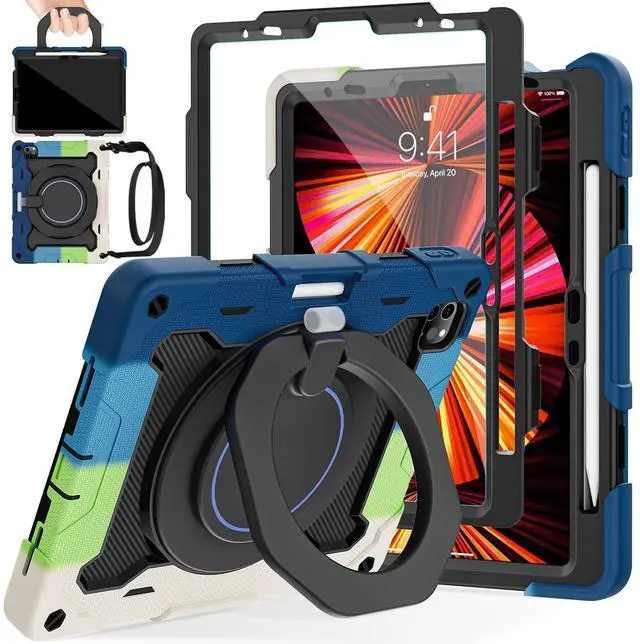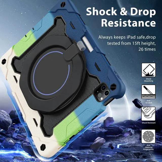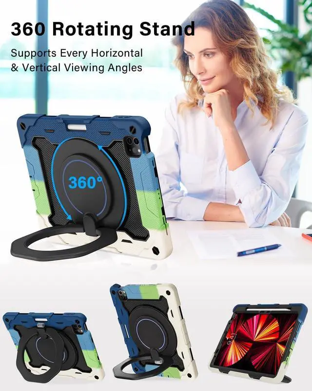 Shockproof and Drop-proof: Case for ipad air 11 inch adopts thickened soft silicone rubber with raised corners, built-in hard PC support shell, and sponge pad at the bottom. The unique shock-absorbing design protects iPad pro 11 inch reduces the risk of breakage. The raised baffle provides protection for the camera and prevents it from being scratched. Ultra-clear screen film, paired with a tablet case for 360-degree all-round protection ^^ Stable Stand and