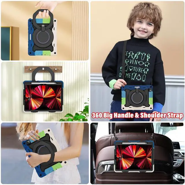 Adjustable Shoulder Strap: The tablet for ipad air 5th/4th with 180 degree folding and opening, 360 degree circular rotatable portable stand, suitable for any Angle, providing you with a comfortable typing or viewing Angle. The adjustable and detachable shoulder strap enables you to carry your tablet on your shoulder or hang it on the back of a chair, allowing you to easily take your tablet wherever you want. ^^ Precise Cutting and