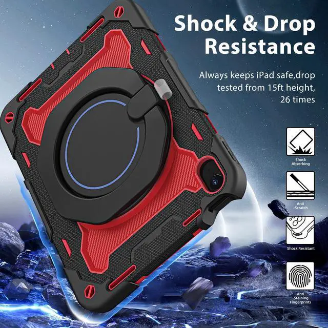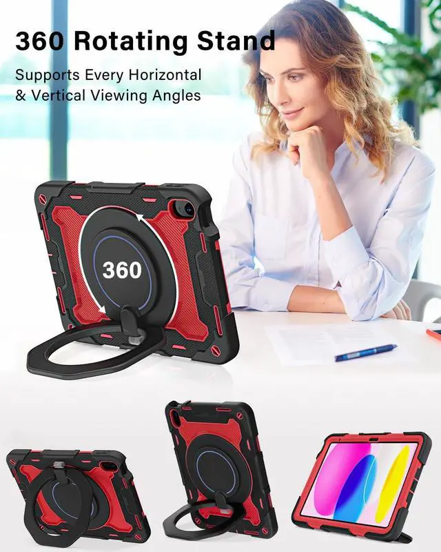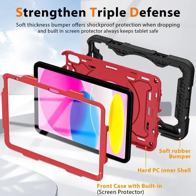 Fits iPad 11-inch (A1611th generation 2025 (Model: A3355, A3356, iPad 10th generation 10.9 -inch 2022 (Model: A2696, A2757, A2777) ^^ [Advanced Silicone Material Enhanced Drop Protection] Upgrade shock-absorbing iPad 10th silicone shell with Air-Guard corners and shock-absorbing silicone to protect iPad 10th case from drop, shocks, impacts and scratches during hit against floor and daily use situation, ensure offer drop protection truly, also particle full around on silicone increase comfortable and anti-slip function when in use ^^ [3-Layer Full Body Protection with built in HD Screen Protector] Built in HD screen protector, enhance 3-layer construction design, unique super thick shock-absorbing iPad 10th/11th Case silicone shell exceed 2X Military Grade Drop Test Standard [MIL-STD 810G- 516.6 ], be sure to offer strongest protection, against any sudden drop, shock and knocks, safe for kids. Additional built-in upgrade sponge technology adds extra heat-dissipation ^^ [Multiple angles of kickstand/Magic Kickstand & Handle] Upgrade 360 rotating and foldable kickstand provides angle between 20-75 degrees of horizontal (landscape) or vertical (portrait) orientation for your 10.9 inch iPad 10th/11th tablet. Also offers hand hold and hung on wall using by handle function, allow you use or carry much easier, match up all kinds of group ^^ [Adjustable / Detachable Shoulder Strap & Pencil Holder] Equip with 59 inches adjustable and detachable shoulder strap assure no matter where you go, carry it up with maximum, totally relieve your hands, also can hung on the back seat in car, create a mini movie theater for your kids.
