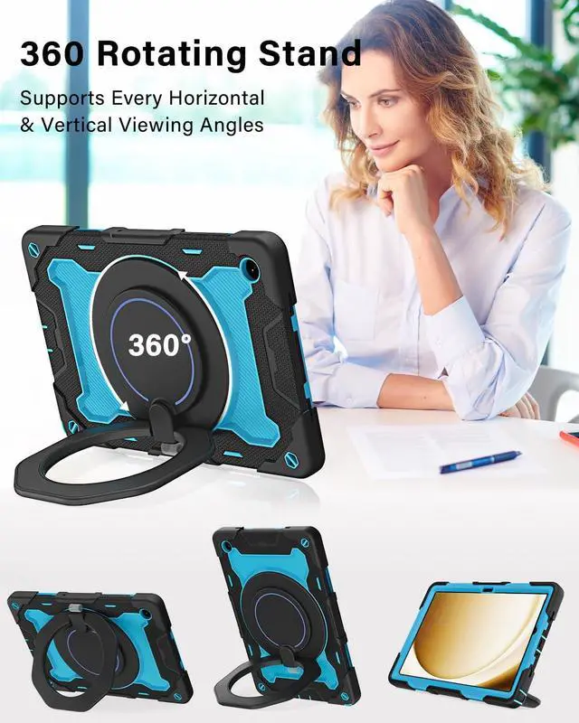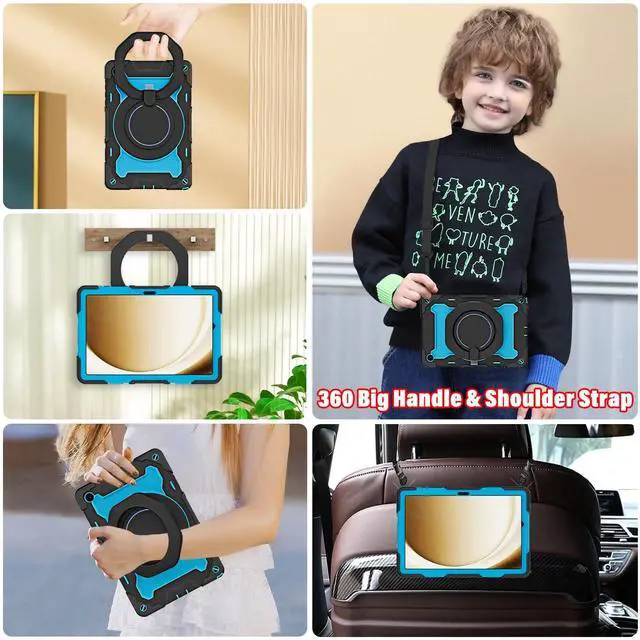 Galaxy A9 plus 2023(Model: SM-X210/X216/X218) ^^ [Advanced Silicone Material Enhanced Drop Protection] Upgrade shock-absorbing Samsung Tablet A9/A11 plus silicone shell with Air-Guard corners and shock-absorbing silicone to protect Galaxy Tab A9+/A11+ case from drop, shocks, impacts and scratches during hit against floor and daily use situation, ensure offer drop protection truly, also particle full around on silicone increase comfortable and anti-slip function when in use ^^ [3-Layer Full Body Protection with built in HD Screen Protector] Built in HD screen protector, enhance 3-layer construction design, unique super thick shock-absorbing Galaxy Tab A9+/A11+ Case 11 inch silicone shell exceed 2X Military Grade Drop Test Standard [MIL-STD 810G- 516.6 ], be sure to offer strongest protection, against any sudden drop, shock and knocks, safe for kids. Additional built-in upgrade sponge technology adds extra heat-dissipation ^^ [Multiple angles of kickstand/Magic Kickstand & Handle] Upgrade 360 rotating and foldable kickstand provides angle between 20-75 degrees of horizontal (landscape) or vertical (portrait) orientation for your 11 inch Galaxy Tab A9+/A11+ tablet. Also offers hand hold and hung on wall using by handle function, allow you use or carry much easier, match up all kinds of group ^^ [Adjustable / Detachable Shoulder Strap & Pencil Holder] Equip with 59 inches adjustable and detachable shoulder strap assure no matter where you go, carry it up with maximum, totally relieve your hands, also can hung on the back seat in car, create a mini movie theater for your kids.