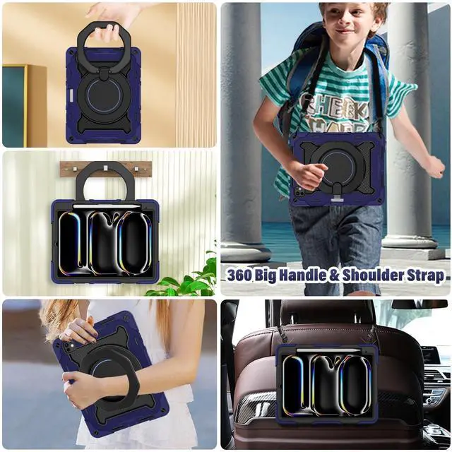 ROISKIN for iPad Pro 11 inch Case (M5/M4 (2025/2024)), Pro 11'' 6th/5th Gen -with HD Screen Protector, 360 Kickstand/Handle, Shoulder Strap, Pen Holder, Heavy Duty Military Grade - Kids Friendly