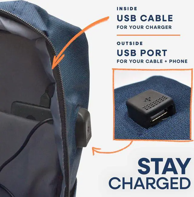 The weekender backpack has a padded back for your comfort. Padded straps are adjustable. Furthermore, this business travel backpack has a built-in USB port outside the bag, and a USB cable inside, so you can stay connected without having to rely on wall sockets or chargers in airports that may not be equipped for comfort and ease. The minimalist design of this cute travel backpack will match anything from a suit, to glam travel gear, to comfy sweats.