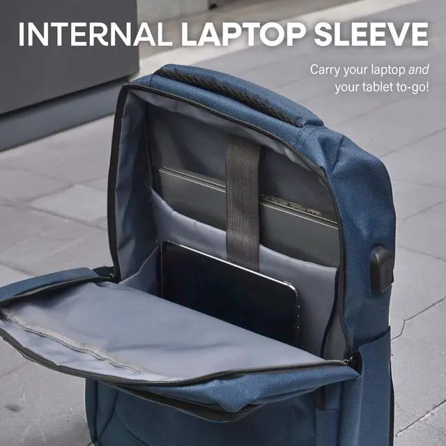 The bag is just the right size for your laptop. Measuring 17x12x5 1/2 inches, this is a commuter backpack women and men can use with ease without overwhelming you with its size. Whether you're wearing the transport backpack on your shoulders, or attaching the sturdy backpack to your wheel luggage through the attached luggage strap, you'll find that it has enough space to carry your essentials. The internal laptop sleeve keeps your gadgets protected during transit.