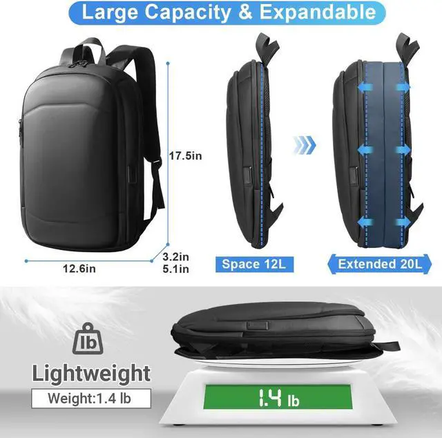 [(Slim & Expandable Backpack)] :This UPGRADE 17 inch business backpack for men is ultra compact and sleek,also expandable to carry big objects.Open the durable YKK zippers,the packaging space can be increased from 15L to 27L.The expandable travel laptop backpack for men perfect for daily commutes,business,trips,or weekend getaways.