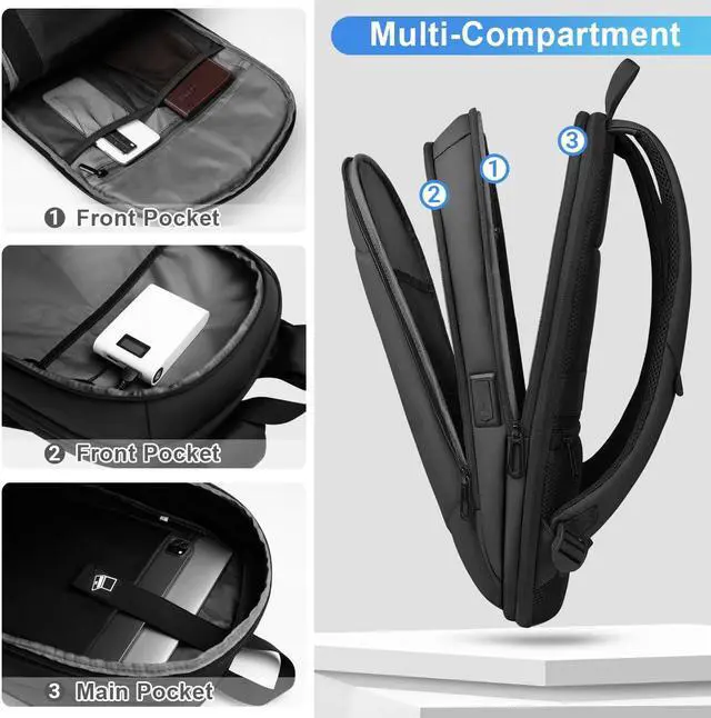 [(USB Charging Port)] :With built in USB charger outside and built in charging cable inside,this slim backpack for men gives you access to it via USB port outside on the computer bags for laptops (Power bank is not included).Free up your hands so you can use your electronic devices while walking.This slim laptop backpack is a perfect choice for everyday use or profess