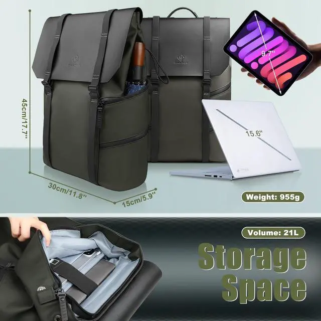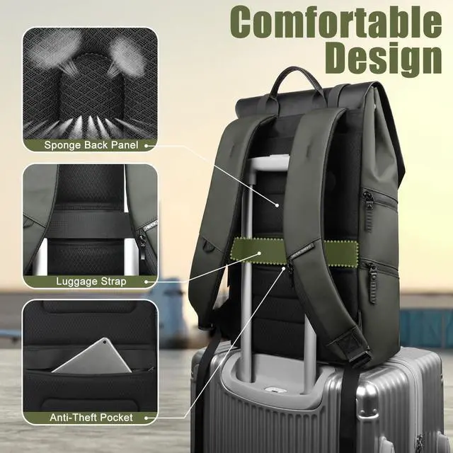 hk Backpack for Men Laptop Backpack 15.6 Inch Travel Business Backpack Waterproof Anti-Theft Computer Laptop Backpacks for College Work Hiking Lightweight Vintage Casual Flap Backpack - Green