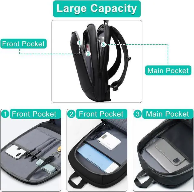 [(USB Charging Port)] :With built in USB charger outside and built in charging cable inside,this slim backpack for men gives you access to it via USB port outside on the computer bags for laptops (Power bank is not included).Free up your hands so you can use your electronic devices while walking.This slim laptop backpack is a perfect choice for everyday use or profess