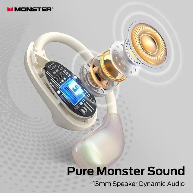 360° Biomimetic Fit: The Monster Open AC510 earbuds are made of liquid skin-friendly silicone material and equipped with ear pressure sensing technology, which automatically adjusts the fit when shaking, ensuring stability and preventing dropout
