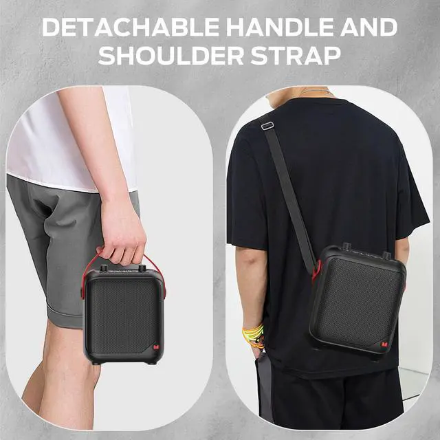 ^^ Compact and Portable -- Removable silicone strap and shoulder strap design make the outdoor Bluetooth speaker perfect for ultimate convenience on the go, The shoulder is adjustable for a comfortable length, take it easy as a shoulder bag. Its powerful sound quality promises to keep going no matter where you are. Bring the music to the traveling, camping, beach trips, and outdoor activities. ^^ Easy Bluetooth Pairing -- Features advanced Bluetooth technology that ensures seamless music streaming between your device and the wireless portable speaker, With its stable connection, you can feel the crisp and clear sound without distortion or breaks, giving you the freedom to move around.
