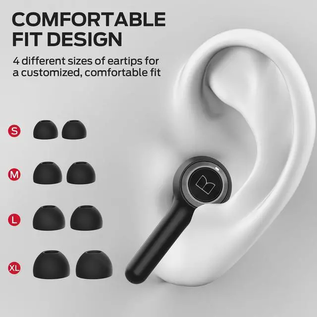 Besides, these Earbuds are IPX6 Water Resistant, they are protected against splashes of water, so you can keep playing in any condition. ^^ Ergonomic Design & Featherweight Fit - Monster Wireless Earbuds weighs about 4 grams, 15% lighter than standard Bluetooth headphones models, making them practically weightless in your ears. Designed with ergonomics in mind, they provide long-lasting comfort, allowing you to wear them for extended periods without any discomfort. To ensure a secure fit, the in ear earphones come with 4 pairs of soft rubber ear caps in different sizes (M size installed).
