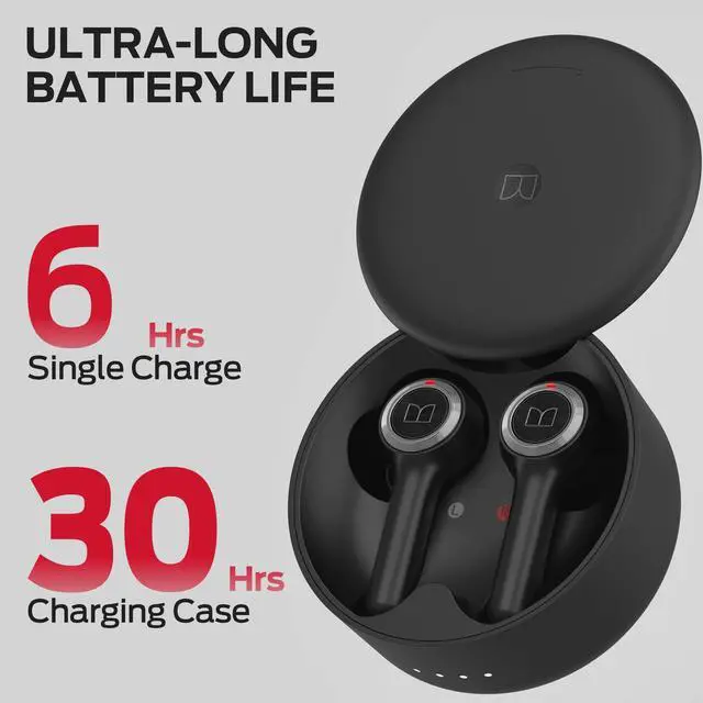 Additionally, the earbuds feature a press-button control, just simply press the Bluetooth earbuds to play/pause, next/previous, volume +/-, answer/end call, and voice assistant, perfectly meet your daily needs and bring more convenience to your life. ^^ 30H Extended Playtime & IPX6 Water Resistant - With up to 6 hours of continuous playback on a single charge and an additional 24 hours provided by the charging case, you can stay entertained throughout the day, never worry about running out of battery again, and enjoy uninterrupted music, podcasts, and calls with the Monster Wireless Earbuds.