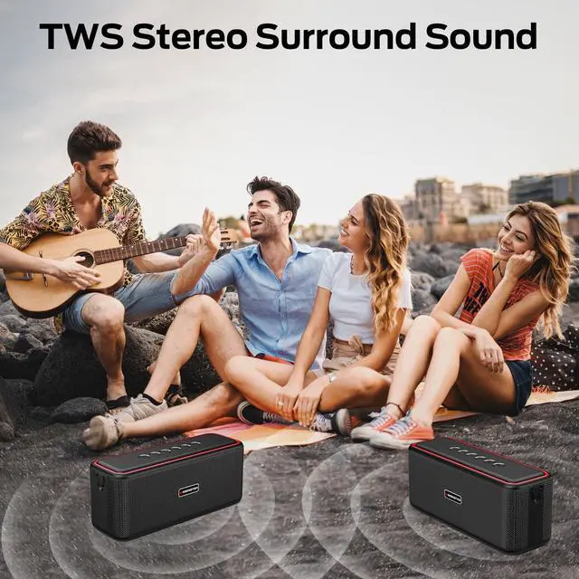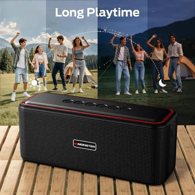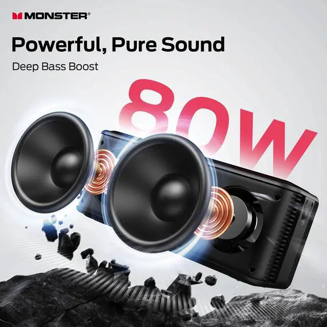 ^^ Impressive Deep Bass: Transform your listening experience with impressive deep bass. The 100W deep bass boost ensures that you feel every beat, providing rich, resonant lows that add depth to your music. Whether you're enjoying heart-pounding beats or mellow tunes, this speaker creates an immersive atmosphere that captivates your senses and makes every musical moment unforgettable.