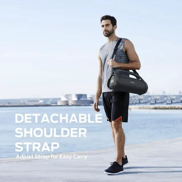 For the sake of humanization, the wireless bluetooth speaker includes an extra adjustable tear-resistant shoulder strap for more easy portability and is designed for active families and people on the move, catering to your needs throughout the day. ^^ Multiple Playback Modes-- 5 kinds of audio input give you more audio options to customize your favorite tunes, Bluetooth 5.0 / AUX / Micro SD Card / USB / Microphone Input. The powerful Bluetooth speaker brings vivid sound to life for a fantastically dynamic Audio experience. ^^ Advanced Bluetooth Connection Technology-- Bluetooth 5.0 technology provides fast and stable signal transmission (connection range of 100 feet).