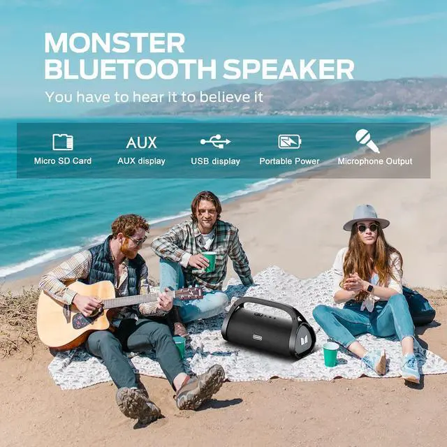 Incredible Stereo Sound & Deep Bass Speakers-- Monster's unique Pure Sound technology from 40 years of sound engineering is fine-tuned to deliver the most impactful music experience possible. Built-in 2 subwoofers and 2 tweeters, loud and undistorted treble, and deep and delicate bass, the loud speaker like being in front of the artist, next to them in the studio or on stage. bringing you "closer to the music". You have to hear it to believe it. ^^ Up to 24 Hours Playtime with High-Capacity Battery-- Built-in high-capacity 4000mAh Rechargeable Battery supports up to 24 hours of playtime at 50% volume.