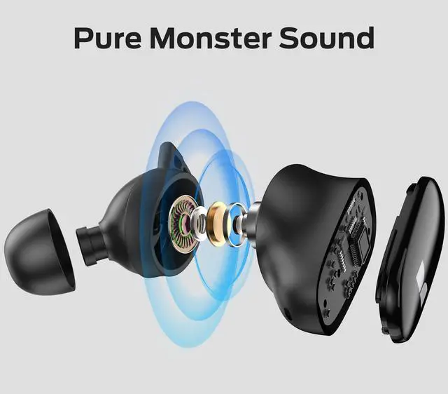 Pure Monster Sound Monster N-Lite 206 earbuds with a 10mm driver crafts to produce a rich bass that resonates with every beat, immersing you in a world of deep, impactful sound. Coupled with DSP amplification technology, ensuring minimal distortion and delivering a sound for a true-to-life listening experience. ^^ Ergonomic Fit Design Crafted with an ergonomic design, these Bluetooth headphones naturally nestle into your ear and minimize external noise while providing a comfortable fit that stays in place even during rigorous activities. Comes with 3 different sizes of ear tips, allowing you to find the perfect fit that contours to the unique shape of your ear.