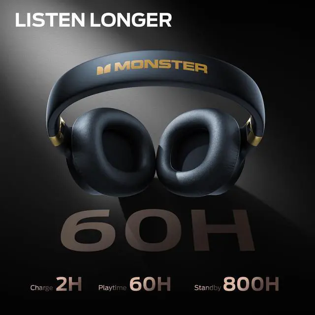 ^^ 60H Playtime And Type-C Fast Charge - Monster Persona over ear headphones play up to 40 hours of music in noise cancelling mode. Standard mode extends the playtime to 60 hours. Designed with Type-C fast charging, enjoy 4hour listening with a 5-minute charge. ^^ One Step Paring and Bluetooth 5.4 - Monster Persona wireless headphones will automatically connect to any Bluetooth-enabled device immediately after the first connection. Bluetooth 5.4 technology ensures stable transmission speed, lower latency, and better audio output. No more tangled cords or limiting freedom of movement, let yourself feel the joy of moving with the favorite music.