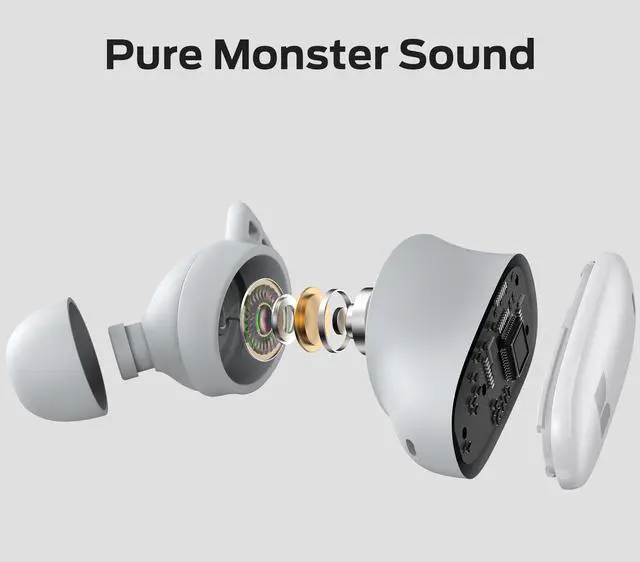 Pure Monster Sound Monster N-Lite 206 earbuds with a 10mm driver crafts to produce a rich bass that resonates with every beat, immersing you in a world of deep, impactful sound. Coupled with DSP amplification technology, ensuring minimal distortion and delivering a sound for a true-to-life listening experience. ^^ Ergonomic Fit Design Crafted with an ergonomic design, these Bluetooth headphones naturally nestle into your ear and minimize external noise while providing a comfortable fit that stays in place even during rigorous activities. Comes with 3 different sizes of ear tips, allowing you to find the perfect fit that contours to the unique shape of your ear.