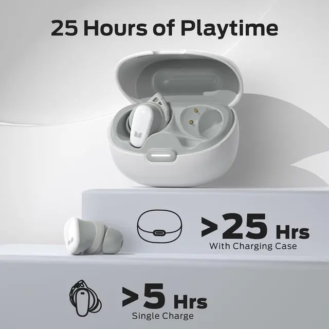 ^^ Easily Touch Control The Bluetooth headphones are equipped with sensitive touch controls that allow you to effortlessly manage your music and calls. With a simple tap or touch, you can play, pause, skip tracks, and adjust the volume. Perfect for when you're on the move or need to keep your hands occupied. ^^ 25 Hours Battery Life Unlock the freedom of extended listening with the Bluetooth earbuds, designed to deliver up to an impressive 25 hours of non-stop listening enjoyment. Whether you tackle a full day's work or want to lose in your favorite tunes, the earphones can ensure you're never disconnected from the sounds you love.