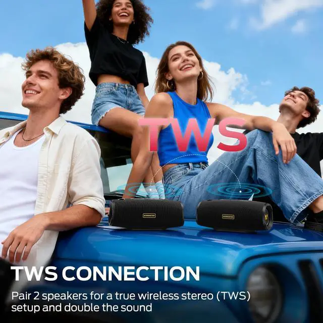 Monster S380 Bluetooth Speaker, Portable Speaker with 40W Stereo Sound, Bluetooth 6.0, 20H Playtime, TWS Pairing, Support AUX/TF Card, IPX6 Waterproof Wireless Speaker for Home, Travel, Outdoor