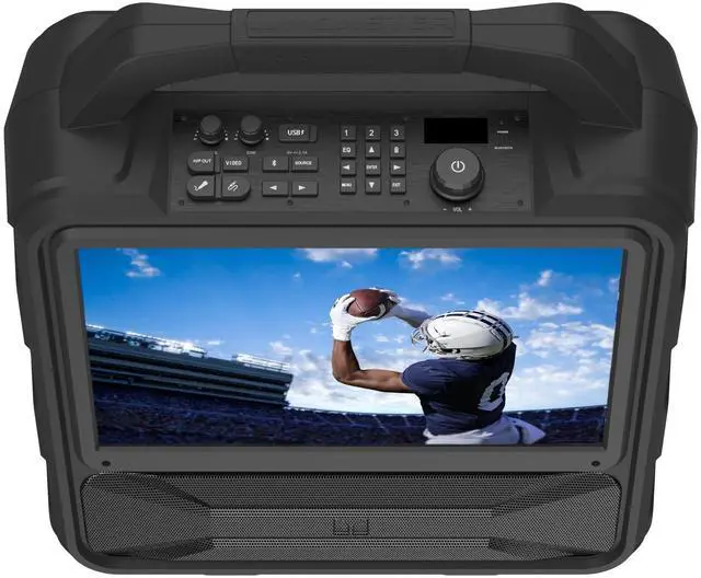 The upgraded Monster Vision 2 MAX redefines Portable Entertainment, combining a stunning 15.6 Full HD (1080p) IPS display, booming dual 100W speakers, and seamless Bluetooth 5.3 connectivity in one powerful, rugged design. Perfect for tailgating, camping, or fishing trips, it delivers vibrant visuals and immersive audio wherever you go. With versatile inputs including two HDMI ports (6ft USB-C to HDMI cable included), HD TV Tuner (antenna included) a USB port, Aux-in, and a headphone output, you can easily connect your favorite devices for endless entertainment. Built tough with an IPX4 water-resistant rating, FM radio presets, and a built-in power bank, the Monster Vision keeps the fun going rain or shine.