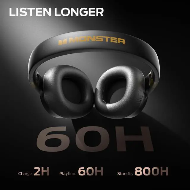 ^^ 60H Playtime And Type-C Fast Charge - Monster Persona over ear headphones play up to 40 hours of music in noise cancelling mode. Standard mode extends the playtime to 60 hours. Designed with Type-C fast charging, enjoy 4hour listening with a 5-minute charge. ^^ One Step Paring and Bluetooth 5.4 - Monster Persona wireless headphones will automatically connect to any Bluetooth-enabled device immediately after the first connection. Bluetooth 5.4 technology ensures stable transmission speed, lower latency, and better audio output. No more tangled cords or limiting freedom of movement, let yourself feel the joy of moving with the favorite music.