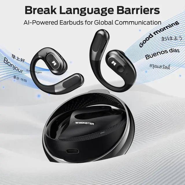 With an IPX5 water resistance rating, theyre safe from sweat and light rain, ensuring reliable performance in all conditions. ^^ [ Three Smart Modes for Every Situation ] The AI translation earbuds offer three intuitive translation modes: Free Talk Mode for natural, back-and-forth conversations, Translation Machine Mode for quick, on-the-go translations, and Headphones & Phone Mode for easy integration with your device. No matter the scenario, the right mode is always at your fingertips. ^^ [ Comfortable & Secure Fit All Day ] The ergonomic open ear design ensures a comfortable and secure fit, even during extended use. Whether youre commuting, exercising, or in meetings, the open ear headphones stay in place without causing discomfort. At just 7g, they feel nearly weightless, ensuring all-day comfort without any burden. ^^ [ App Features for Enhanced Experience ] The dedicated app unlocks a range of smart features for an enhanced experience. AI Chat Mode lets users engage in real-time conversations with AI for quick responses. The Photo Translation feature instantly translates text from images, offering convenient language support. Additionally, the app includes various white noise options, helping users stay focused or relaxed in any environment, enhancing the overall experience.