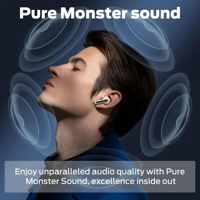 Pure Monster Sound & Immersive Stereo Sound Monster Wireless Earbuds are designed and engineered by Noel Lee and the Monster Design Team in the USA with quality components that create the most impactful musical experience with zero distortion at any volume. The unique digital audio processor and powerful 10mm drivers enhance and reproduce perfect Hifi immersive stereo audio, equipped with Qualcomm apt-X high-definition audio decoding to restore richer sound details. ^^ Crystal-Clear Call & Bluetooth 5.3 technologyMonster Bluetooth headphones are built in 2 mics to provide a crystal clear call. It adopts the advanced Bluetooth 5.3 technology and supports HID, HFP, A2DP, and AVRCP, which provides faster transmission speed, stronger connection stability, and a longer range of Bluetooth (Up to 15m).
