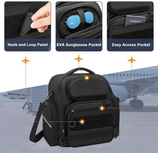 Versatile Design: Our pilot bag is made of 600D nylon fabric materials to withstand the rigors of frequent travel and use. Inside orange edge of the pouches for quick access to gears when needed. Reflective strips on side pockets for well identify the bag in the dark ^^